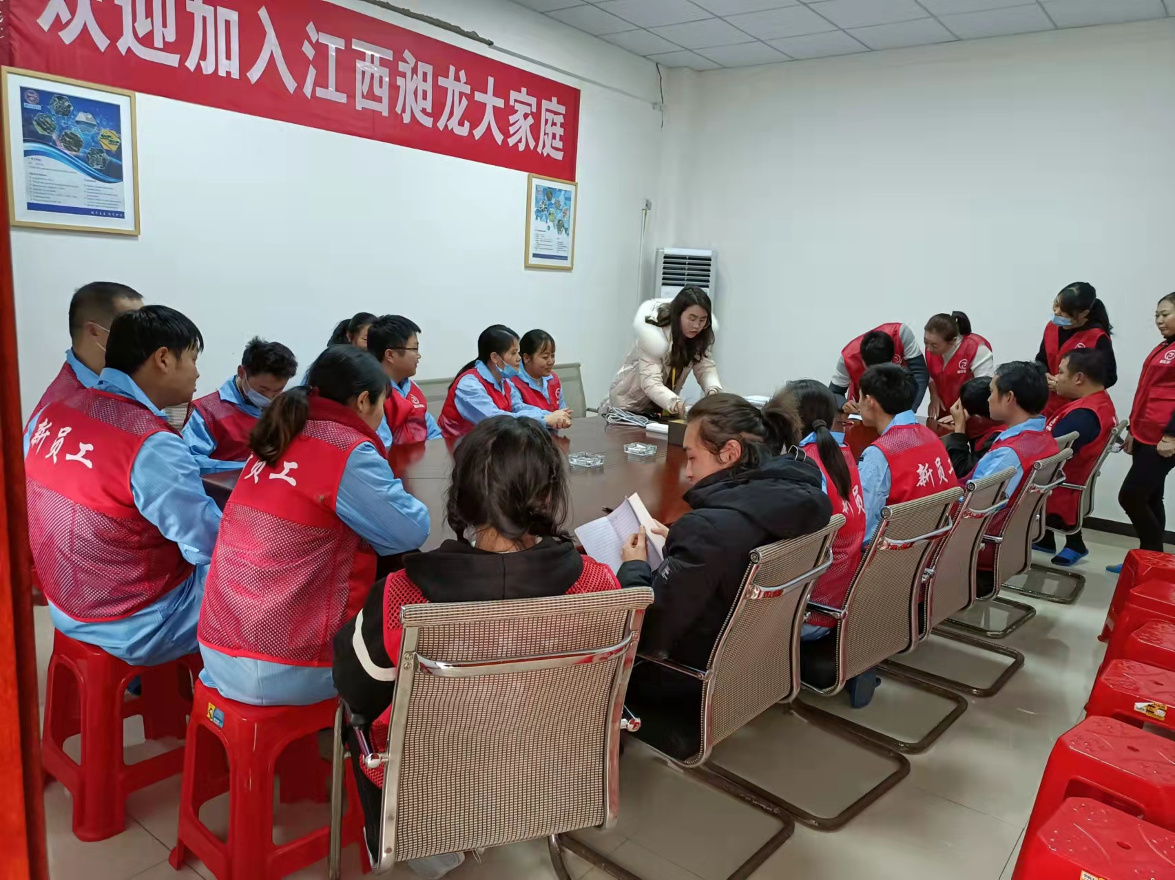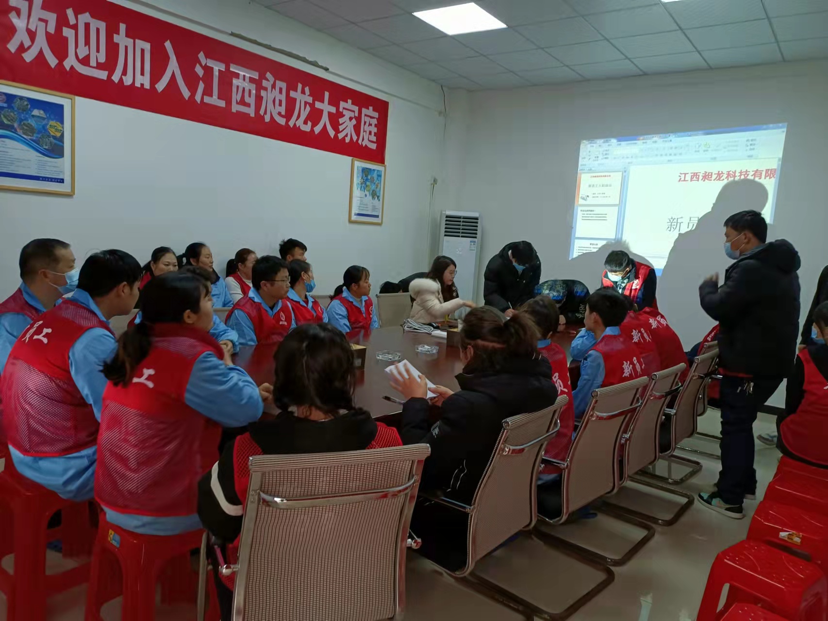 江西庄闲和游戏科技有限公司2022年因产能扩大新厂即将投入使用,向全社会招聘了众多精英加入我们这个大家庭,为了让新来的同事更快的适应公司的工作环境和工作技能,在管理上公司有完善的培训体系、技能上有师父手把手带徒弟模式,两者完美结合让新来的同事很快就感觉到了一种集体归属感和荣誉感。2022年2月19日江西庄闲和游戏科技有限公司举行了2022年第一批新员工培训及师傅徒弟签约并圆满结束